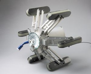 The robot uses dry ice to clean ductwork and can move up and down using its tread-like feet. The jets are situated on the middle of the robot for maximum pressure and Jetty can move through circular, rectangular, and square ducts and go up curves.