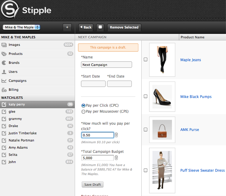 On the advertiser side, brands tag a photo with product information, and Stipple’s technology will automatically syndicate that information to all online copies of that image on the web. Brands then set up pay-per-click (PPC) or pay-per-engagement (PPE) campaigns around the products they wish to monetize. And Stipple offers real-time data and analytics on each campaign’s performance.