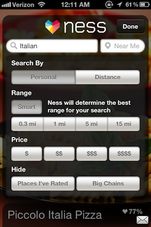 Remember that restaurant recommendations are just step one of what Ness hopes to offer. The next steps are to point the Likeness engine towards shopping, music, nightlife, and entertainment. All of that could make for one killer, subjective mobile search engine.