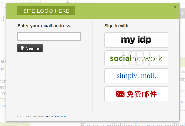 There are a few other websites where you can experiment with the system, such as this sample e-commerce site is also available that uses an account chooser and a test site which lets you manually reconfigure your account after you login.