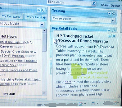 It was widely reported that Best Buy was sitting on over 200,000 TouchPads before HP enacted their drastic price cut, but the fire sale has come and gone, and that would normally be that. Instead, a notice in Best Buy’s Employee Toolkit system shows that their contentious relationship with the TouchPad may not be over just yet.