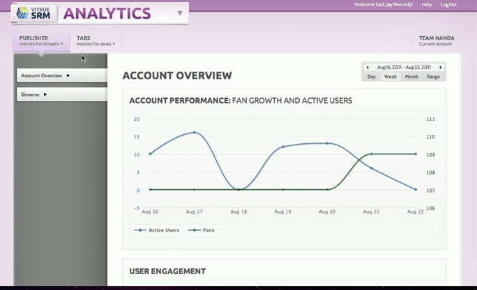 The newest version of Vitrue’s software comes with a new dashboard and user interface, allowing marketers to see, access and manage all of the available functionalities, tools and modules within one interface. The company has also added enhanced analytics and metrics to give marketers specific metrics on demographics and engagement of their social pages and users including insight into traffic sources, overall user demographics, top fan profiles, fan growth breakdowns, top location snapshots, per-post publishing metrics, and user engagement statistics by action (i.e., like, comment, share, play, etc.) and by day of week and time of day.