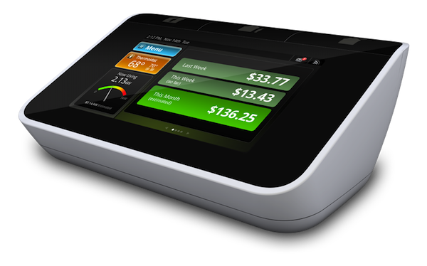 The EnergyHub Home Base is the central station for interacting with the home’s connected devices, where it displays your current and projected energy use on its colorful touchscreen. Here, data is tracked in real-time, and you can program various usage parameters in order to control energy usage automatically.