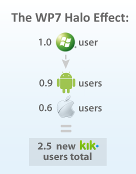 Exclusive – Talk about a halo effect. Kik, a developer of cross-platform mobile communication apps, says something really strange happened when they launched their Windows Phone 7 application last June: user growth across the iOS and Android platform both accelerated significantly.