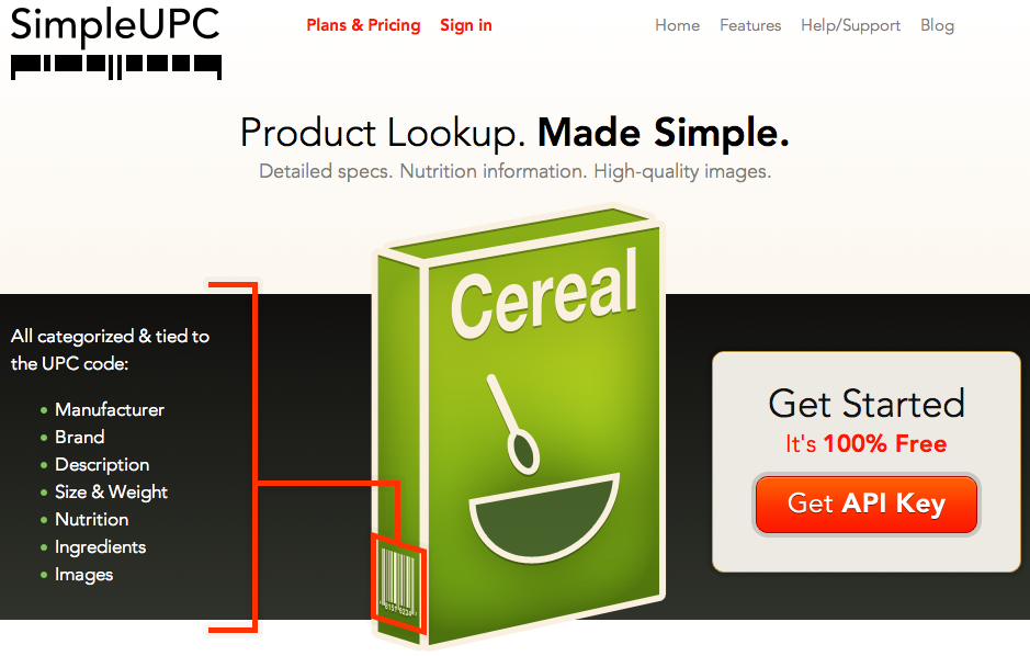 SimpleUPC, however, now offers more affordable options for small businesses, starting at $99/month for 50,000 searches and product info. For $249/month, you get 300K searches plus nutritional info and for $499/month, you get 500K searches, plus nutritional info and images.