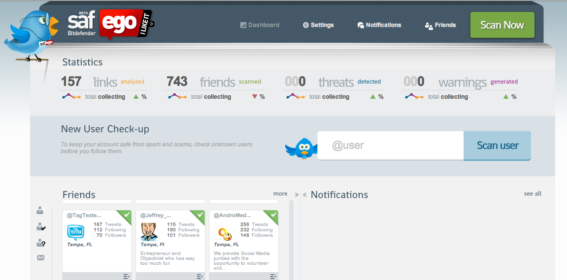 But now there’s a tool that gives you added protection against these sorts of threats. Bitdefender’s new Safego protection for Twitter scans your profile for spam, phishing attempts and malware, and automatically notifies you when threats are detected.