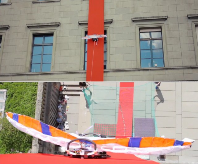 Paraswift is a collaboration between Disney Research and the Swiss Federal Research Institute. This demonstration took place during the International Conference on Climbing and Walking Robots, held at the University Pierre and Marie Curie in Paris.