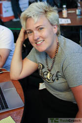 Last but not least among our Hackathon Hackers is Jennie Lees. She lives in the Bay Area, but her accent proves her English roots. The plan for today is to improve Hacker News for mobile, and eventually personalize it by bringing in other news sources.