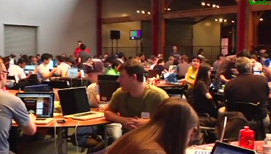 We ran through the Hackathon this afternoon, asking folks what they were working on. The results, obviously, were quite varied and very impressive. Our favorites? The dudes working on an air guitar pick for the iPhone and some other cats working on image-based logins and data sharing.