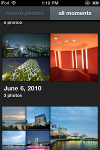 After the photos are imported, Everpix uses a feature called “assistive curating” to create attractively laid-out album groupings called “Moments.” These are similar to iPhoto’s “Events,” but are built for you automatically, which saves you from the hassle of album creation and organization. Not surprisingly, you can see an Apple-like design aesthetic here, given that two of Everpix’s Co-founders, Pierre-Olivier Latour and Kevin Quennesson, each spent several years with the company. Meanwhile, the third Co-founder, Wayne Fan, was previously at frog design.