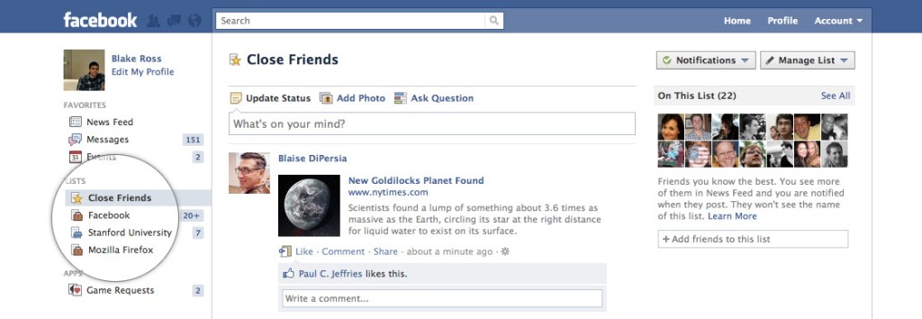 Once you’ve created your new friend lists, you’ll be able to use them the same way you’ve always been able to: namely, you can selectively share content with certain groups, and you can change permissions on your profile visibility for each list.
