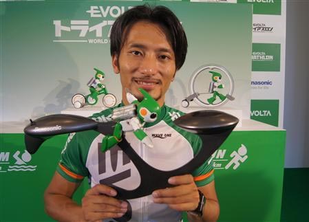In honor of the Iron Man Triathlon in Hawaii, Panasonic has created a tiny EVolt mascot that will run, swim, and bike the course’s full 142 miles in about a week. The teeny little robot will run on EVolt batteries and, since he’s 10 times smaller than a human, he gets to take much longer to finish the course.