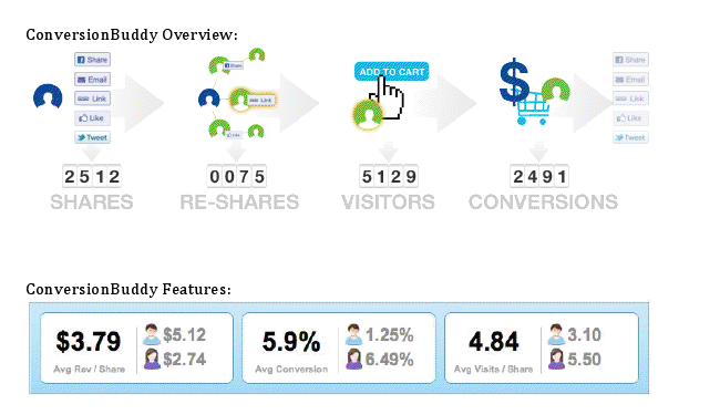 ConversionBuddy allows brands to track connections to boost conversions by gaining insight into the number of shares, tweets, conversions and more. So brands can segment data by demographic and even determine which audience segment shares social content most frequently and which audience generates the most traffic and revenue per share.