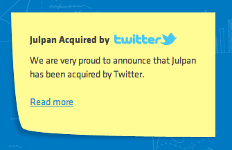 I am very proud to announce that Julpan has been acquired by Twitter.