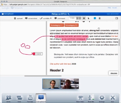 Google+’s Hangouts API is still in testing, so Conceptboard’s Chrome extension is a “technology preview” for now. There may be bugs, but if you get hung up, you can contact the company’s support team here. The extension itself is available for free here on the Chrome Web Store.