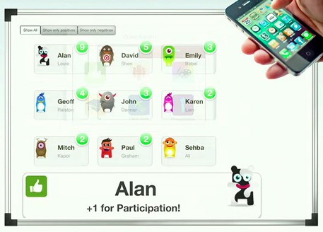 (33:55) Managing student behavior is a major problem in our school systems, wasting tons of class time and monopolizing the attention of new teachers in particular. In ClassDojo, students in classes are publicly awarded points and badges via a web or smartphone app, and that data (+1 for answering, -1 for passing notes) is automatically tracked and shared with parents.