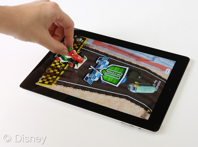Those sensors (patent pending, naturally) identify each particular figure to the iPad, so it will know the difference between Tow Mater and and Lightning McQueen even if you don’t.