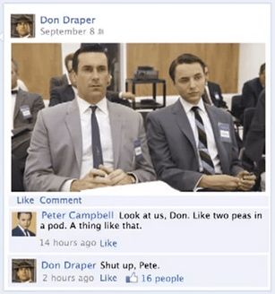 “This makes me happy on a lot of levels,” tweets Facebook Product manager Sam Lessin, about this Mad Men homage to Facebook’s recently unveiled profile Timeline.