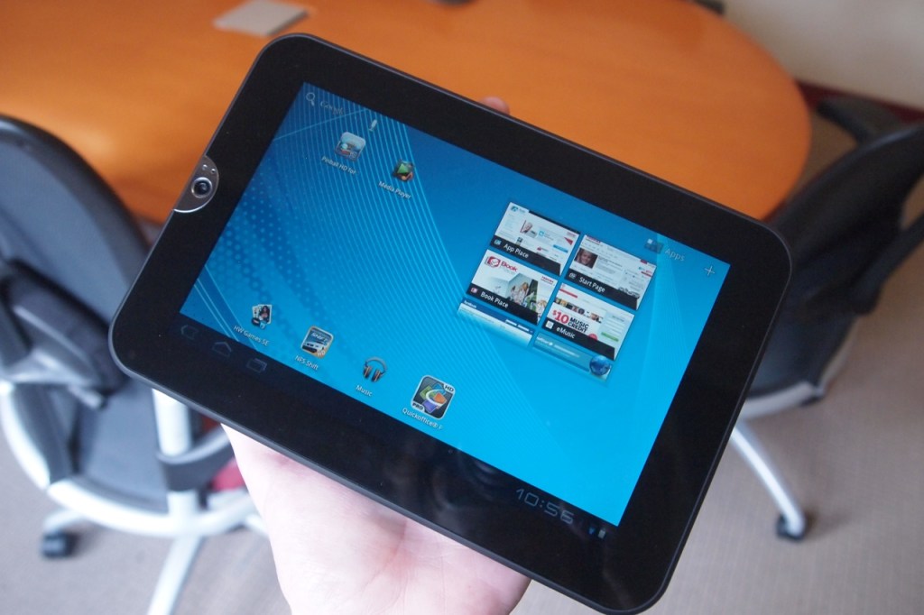 Toshiba’s entrance into the Android tablet market was a pretty good one — Android 3.1 Honeycomb, a wide array of connectivity ports, and interchangeable batteries. But all those ports coupled with a 10-inch form factor made for quite the hefty slate. Personally, I tend to favor the 7 to 8-inch tablet category, which is why I was so pleased to get a peek at Toshiba’s latest tab: The Thrive 7″.