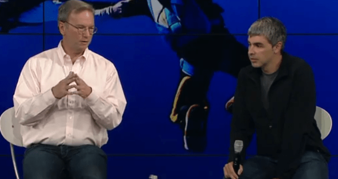 When In The Plex author Steven Levy asked what the biggest threat to Google was right now, Page said “Google,” with a big smile on his face. Schmidt tried to be more nuanced: “the problems in a company of Google’s scale are always internal at some level.” “Yeah, that’s why I said ‘Google’,” Page shot back with, to laughs from the audience.