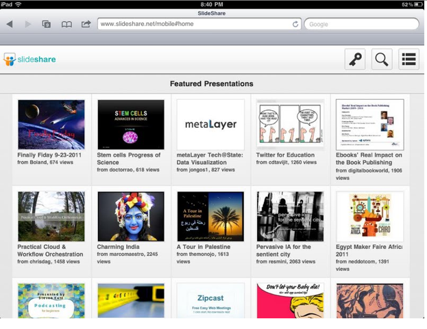 Considering the trend towards content discovery on mobile platforms, it would make sense for SlideShare to have mobile offerings. But the startup has not offered any native apps and until today had a flash-based site that could be reached via the browser. Co-founder Jonathan Boutelle tells us that using the Flash-based site was a barrier for users accessing SlideShare from iOS sites. And when determining whether to build a native app for go HTML5, Boutelle said that building a mobile optimized site made the most sense because of the cross-platform capabilities to work on iPads, iPhones and Android devices.