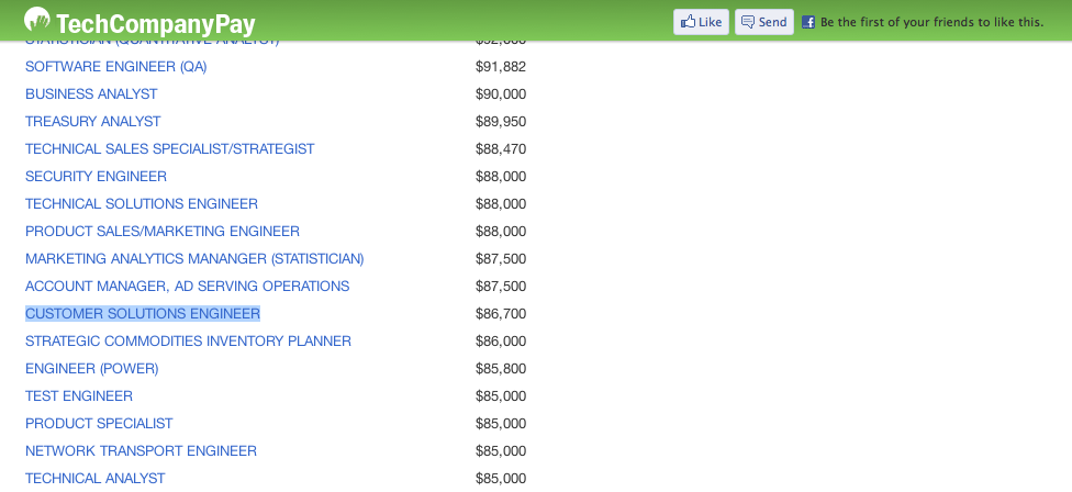 In a disclaimer Jones says that the data on the site is “very accurate” — probably using H1B records — but like most issues of salary should probably be evaluated on a case by case basis. And incase anyone was curious, a Customer Solutions Engineer at Google makes $86K.