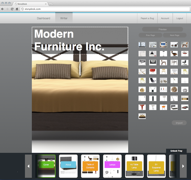 For Stolper, StoryDesk isn’t just about building tools for enterprise, it’s about a re-imagining the process of bringing ideas to life. With paper books and catalogs, you have to flip through a number of pages to move from one section to the next, he says. But with the iPad, where navigation is interactive – up, down and side-to-side – that changes. “We have an ability to structure ideas in a way that’s far more like the human mind,” he says. “In 3D.”