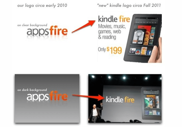 Hey Amazon, Appsfire wants to have a chat about your logo for the Kindle Fire, that interesting, affordable tablet you announced a few days ago. They’re upset because it looks a lot like theirs.