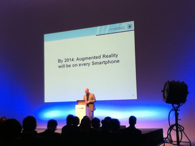 I could try to describe the demos and products I saw at InsideAR, but instead I captured as many of the relevant examples as I could, on video, because a picture is worth…well, you know. In any event, the concepts/products I saw that seemed the most compelling and relevant were the Vuzix HMD, Metaio’s Creator software and the augmented textbook by linked-concept.de