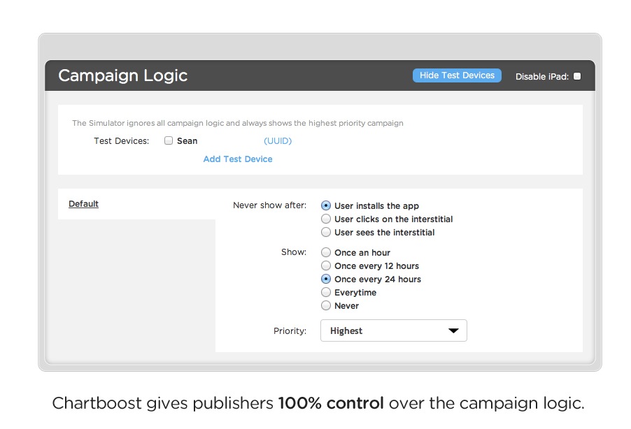 Chartboost is not an ad network, the company explains, it’s a technology platform. It provides free ad-serving technology for direct deals and cross-promotions via the Chartboost SDK. Instead of mediating direct-deals through an ad network, Chartboost publishers get a 100% revenue share on these deals.