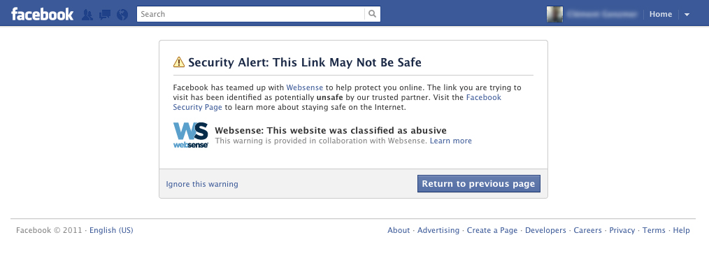 This isn’t the only security mechanism Facebook has in place to protect against malicious links, it should be noted. In May, the social networking site partnered with the crowdsourced reputation management service Web of Trust to offer similar protections. Web of Trust, which will continue to operate on Facebook, also checks to see if links are classified as spam, malware or phishing and presents a warning message of its own. Web of Trust, however, relies on submissions from a community of users who have installed its Web browser extension, not the real-time technology being used in Websense’s solution.