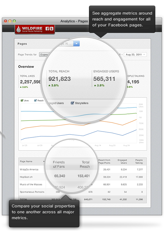 However, the Wildfire suite offers some additional features beyond the new Facebook Insights, including the ability to track and aggregate Insights across multiple fan pages, for example.