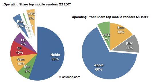 What iPhone lacks in volume, though, it makes up for in profit, capturing two-thirds of available mobile phone profits in Q2 2011. One could even argue that Apple does not need to provide a low-cost iPhone – it was doing just fine without one, thank you very much.