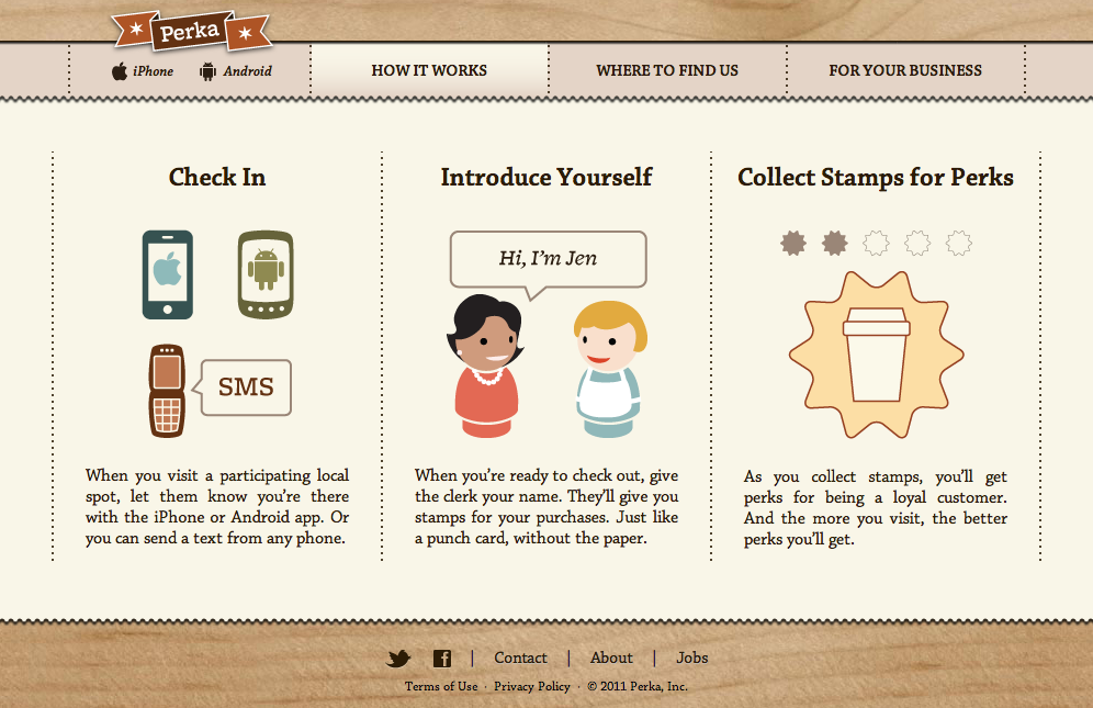 On the other side, consumers get the benefit of being able to easily checkin to Perka on their mobile device from the store, or via SMS from any phone, to earn stamps in pursuit of rewards. Perka is hoping that by offering a simple solution and working individually, face-to-face with small local businesses, they will be able to convince merchants that Perka offers a better way to get at that much-coveted retention — to keep customers coming back.