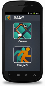 The racers earn coins for participating (and more for victory), which will later be redeemable for game enhancements and real world goods. DASH! works with any racing discipline: driving, cycling, running, snowboarding, etc.