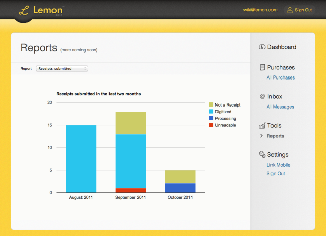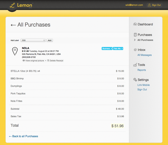 To upload paper receipts, people can download a mobile app and simply snap a picture of the receipt. Lemon will subsequently digitize and store the data.