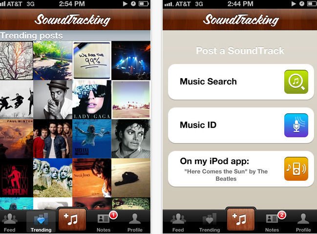 In addition to the basic Twitter for iOS stuff and a streamlined UI (and a “glossy wood soundtrack button”), SoundTracking 2.0 also lets you post songs to a Facebook fan page, which means that the multiple admins of something like a brand’s or an artist’s page can now soundtrack.