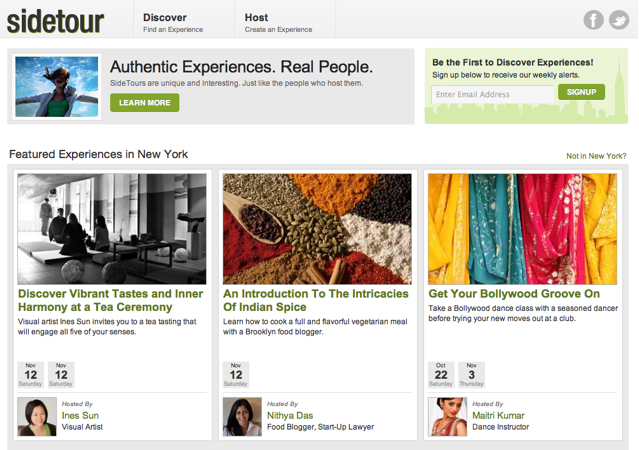 Goyal acknowledges that there are several other startups, like Skyara and Vayable, setting out to do similar things (I’ve heard the ‘Airbnb for activities’ pitch several times). But he says most of them are using a listing model, where users find something they want to do and then contact the host to arrange it. In contrast, SideTour uses an appointment system — a professional chef, for example, would specify exactly which night they were going to be making that homecooked meal, and then people buy tickets to that event.