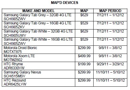 According to an anonymously leaked Verizon document published by Engadget, the Samsung Galaxy Nexus and the HTC Vigor (codenamed Rezound) are going for a minimum advertized price of $299.99 on-contract. Both phones are also slated for a November 10 to May 10 MAP period, suggesting they may launch as early as November 10. But before we go any further, it’s worth practicing a little cynicism in this case, since this leaked document could have been whipped up in Word in about five minutes. Then again, the model numbers seem to make sense, so we’ll just venture forward with caution.