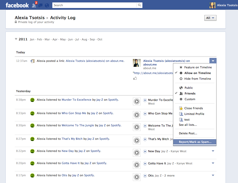 On the same privacy kick, Taylor brought up a little publicized feature of Facebook’s new Timeline called Activity Log, which can be accessed by toggling the View Activity feature next to Update Info in the upper right of your Timeline. Activity Log reveals all the data that you’ve shared on Facebook over time.