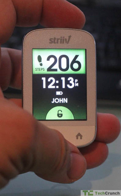 Like the FitBit, Striiv senses strides and stair climbs from the comfort of your pocket. It has a small LCD screen and lasts one week on one charge, making it quite Tamagotchi-like in its size and interface. To use it you just slip it into your pocket and it gives you goofy little badges (“Good start” for your first 150 steps, “Average Day” for 4900 steps, the average number of steps an American takes each day) and you can track your daily stats.