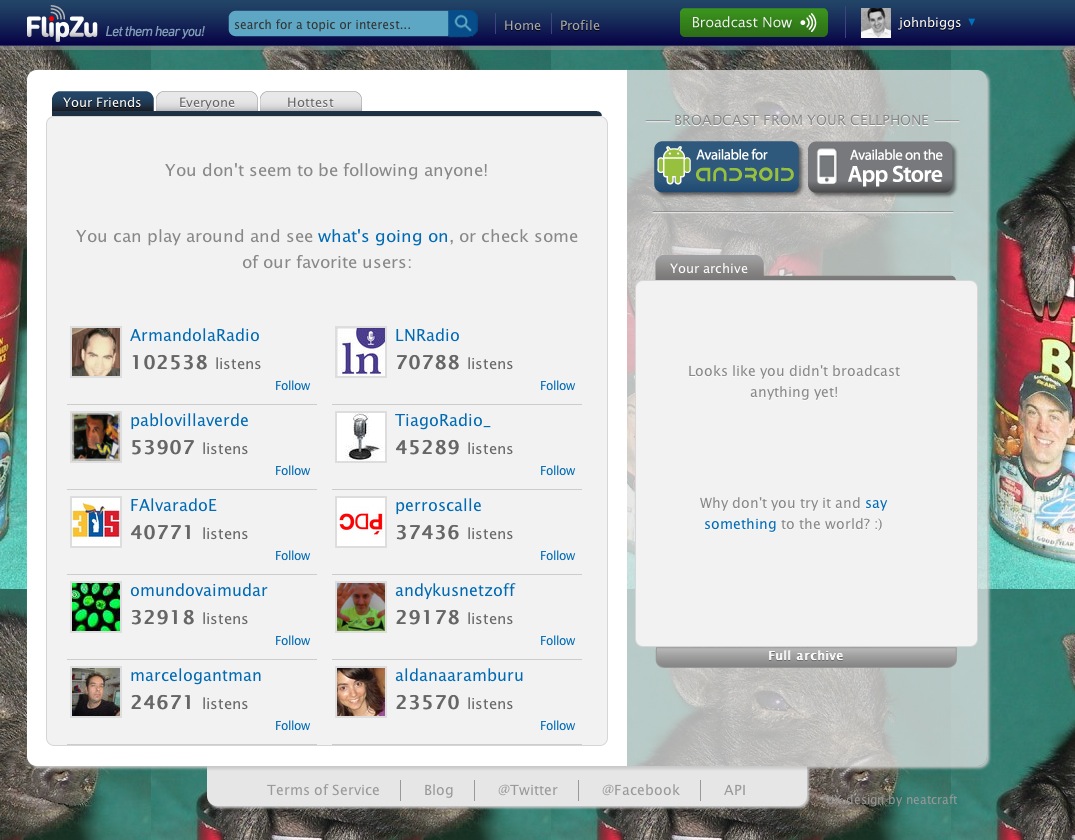 This idea isn’t new. BlogTalkRadio has been doing this for a while, although they’ve focused on the call-in method of recording and transmitting. FlipZu is also fairly limited in terms of media availability and downloads right now although you can create an RSS feed of your recordings, thereby creating a podcast feed for various media players. It could be a great way to run live interviews at events and surreptitiously record Apple press conferences.