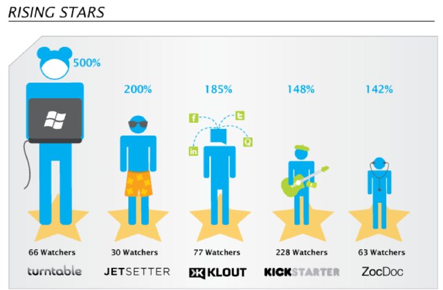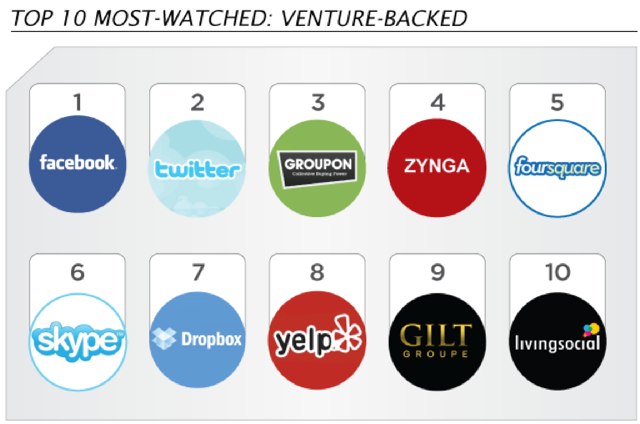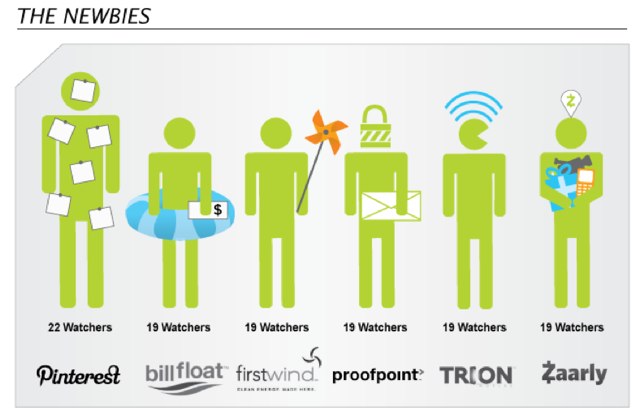 SecondMarket also tracks the “most watched” companies on its service, which is an indication of investor interest. The most watched companies didn’t change from last quarter: (Facebook, Twitter, Groupon, Zynga, Foursquare, Dropbox, etc.). But there is a new group of “rising stars.” These include Turntable, Jetsetter, and Klout. And then bubbling up just below the rising stars are the “newbies”: Pinterest, Billfloat, Firstwind, Proofpoint, and Zaarly. Hmm, is there a correlation between how much press a company gets and interest on SecondMarket?