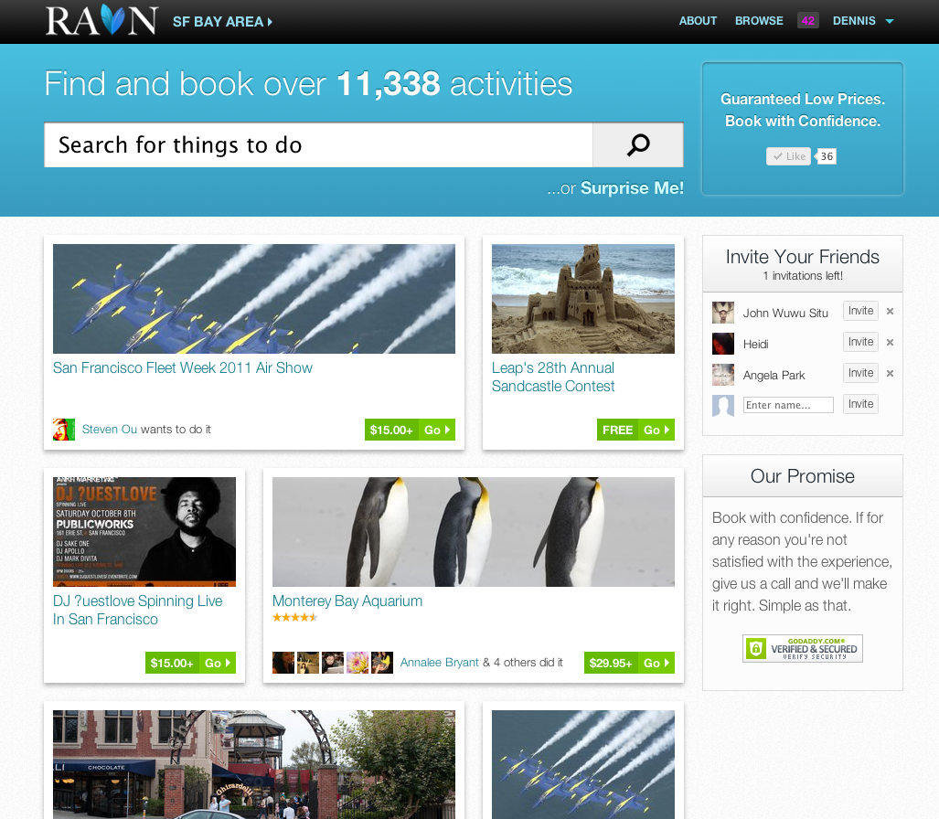 RAVN currently has a marketplace of over 13,000 activities, with a presence in the Bay Area, New York, Los Angeles, and Chicago, and the team is in the process of expanding to Hawaii, Washington DC, and Las Vegas in the next few months.