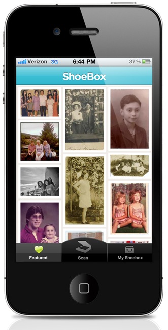 I’m drinking a lot of coffee today because I was up well past my bedtime last night playing around with the test build of the newly launched ShoeBox iPhone application from 1000memories, now live in iTunes. This simple app provides a much-needed function: a way to scan old photographs using your smartphone and post them online.