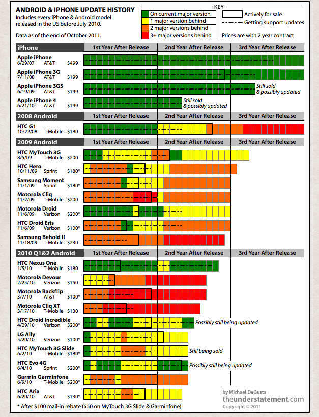 Compare this to iPhone updates (which DeGusta did), and it paints a telling picture.