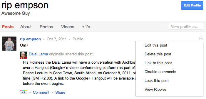 And one of these features launched today on Google+ seems a throwback to one now-defunct feature of Google Wave, called “Playback”. Or at least one might claim this as its genesis, with the feature having its roots in-house, as opposed to some sort of reaction to Facebook’s much bally-hooed timeline that launched this September.