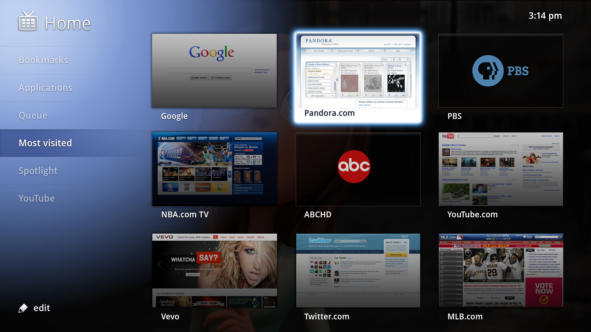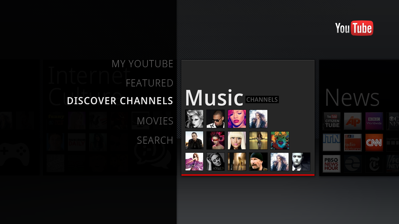 YouTube has always been a big part of Google TV and the new version launches with a completely redesigned Leanback YouTube app exclusive to the platform. Windows Media Center users should feel right at home. The app is a virtual clone of Microsoft’s aging HTPC program. Down the left side is a list of shortcuts while a clean title layout is used for the content including what appears, at least from the screenshots, to be the upcoming YouTube Channels. The new YouTube app was developed after the GTV team discovered that users used YouTube twice as much as expected (probably because big media blocked its free content).