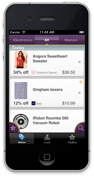The one caveat: at launch some of the items seen in the TapBuy Deals app aren’t actually TapBuy enabled — in other words, you’ll have to go through the retailer’s normal website to actually buy them. But Scholl says they’re working hard to make all of them work with the streamlined buying experience.