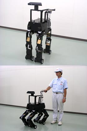 The “dog” has four joints in each leg and is equipped with a set of cameras and sensors to help humans walk around. As robot blog Plastic Pals points out, NSK could equip their robot with GPS, web-connected maps and other bells and whistles to actually turn it into an alternative for real dogs one day.